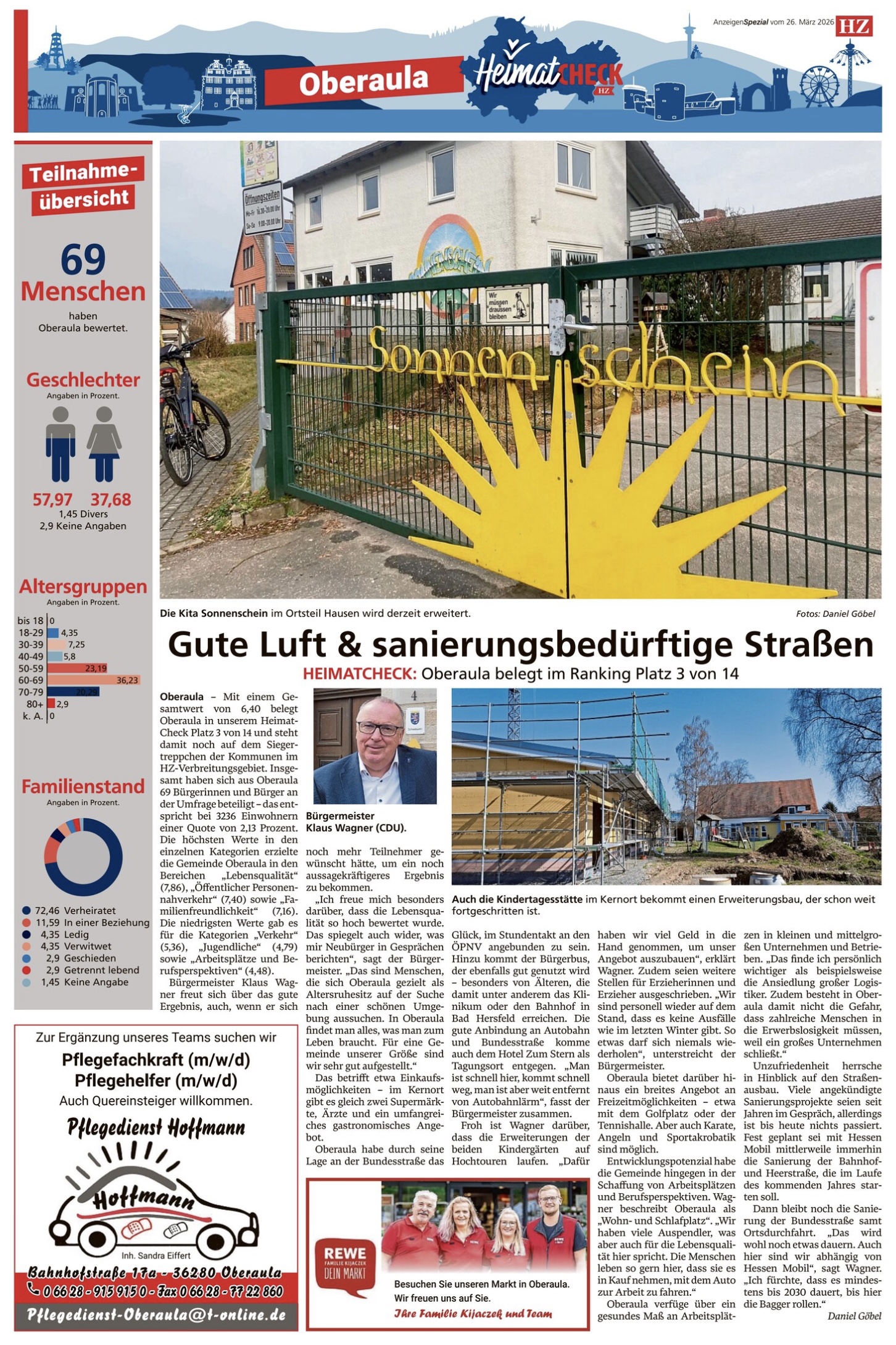 Oberaula – Mit einem Gesamtwert von 6,40 belegt Oberaula in unserem HeimatCheck Platz 3 von 14 und steht damit noch auf dem Siegertreppchen der Kommunen im HZ-Verbreitungsgebiet.