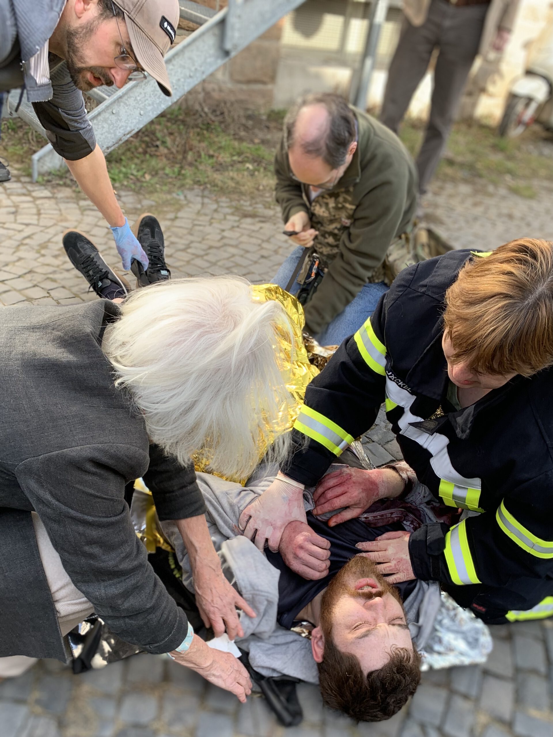 Oberschenkelfraktur mit starker Blutung aus dem Oberschenkel