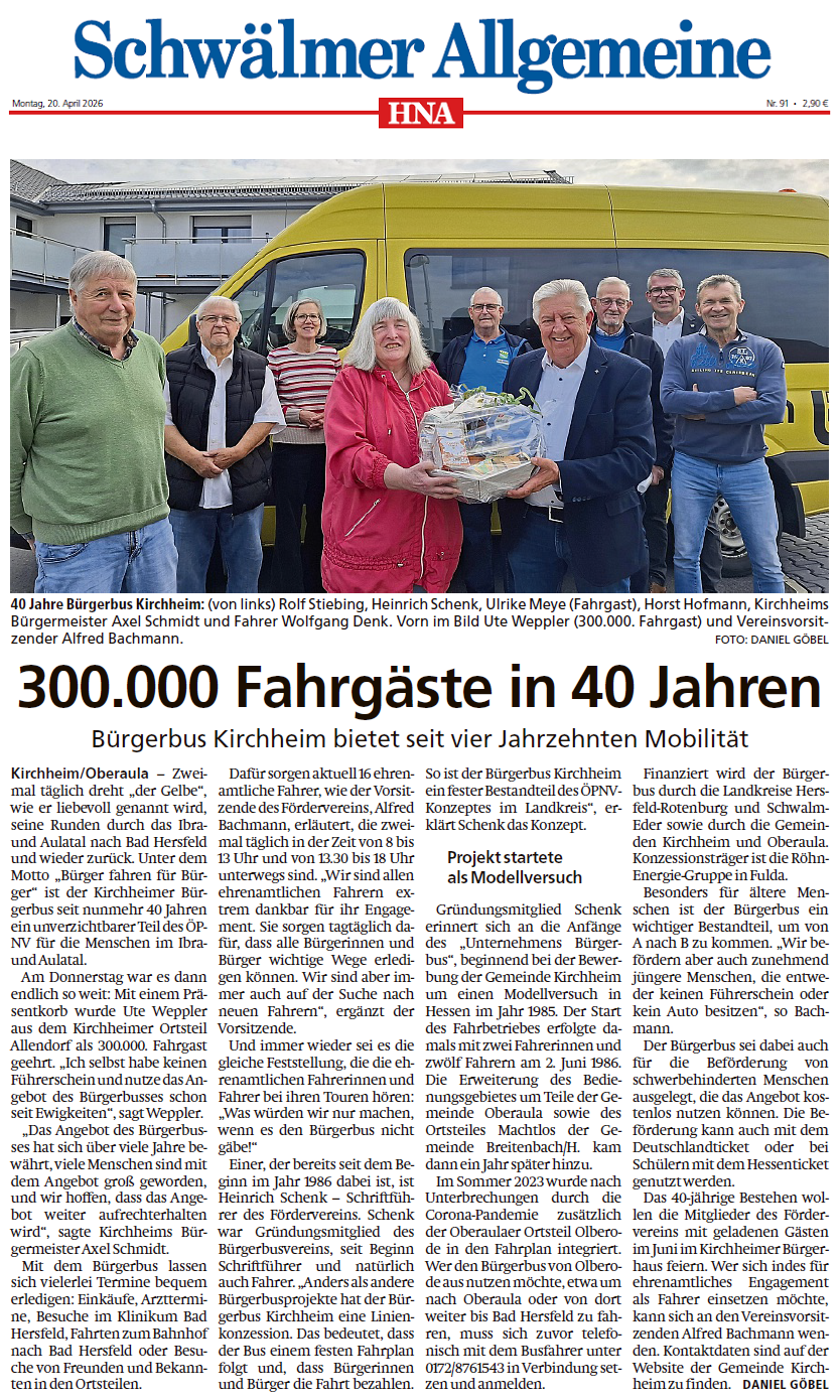 40 Jahre Bürgerbus – 300.000 Fahrgäste