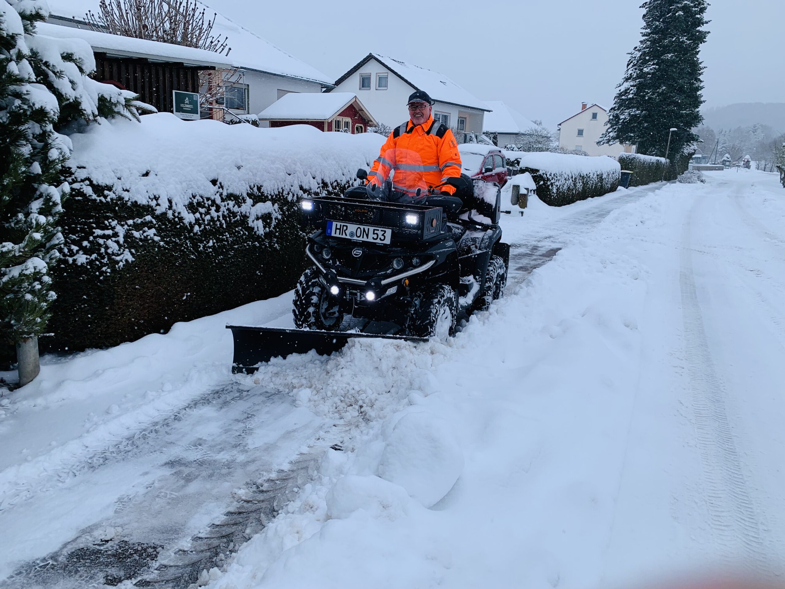 Im Ortsteil Hausen räumt ehrenamtlich Otto Nuhn mit seinem Quad, ausgestattet mit Räum- und Streugerät, in den frühen Morgenstunden die meistgenutzten Bürgersteige im Neubaugebiet – vom Ferienpark bis ins alte Dorf. Dafür wird ihm ein großes Lob und ein herzliches Dankeschön ausgesprochen.