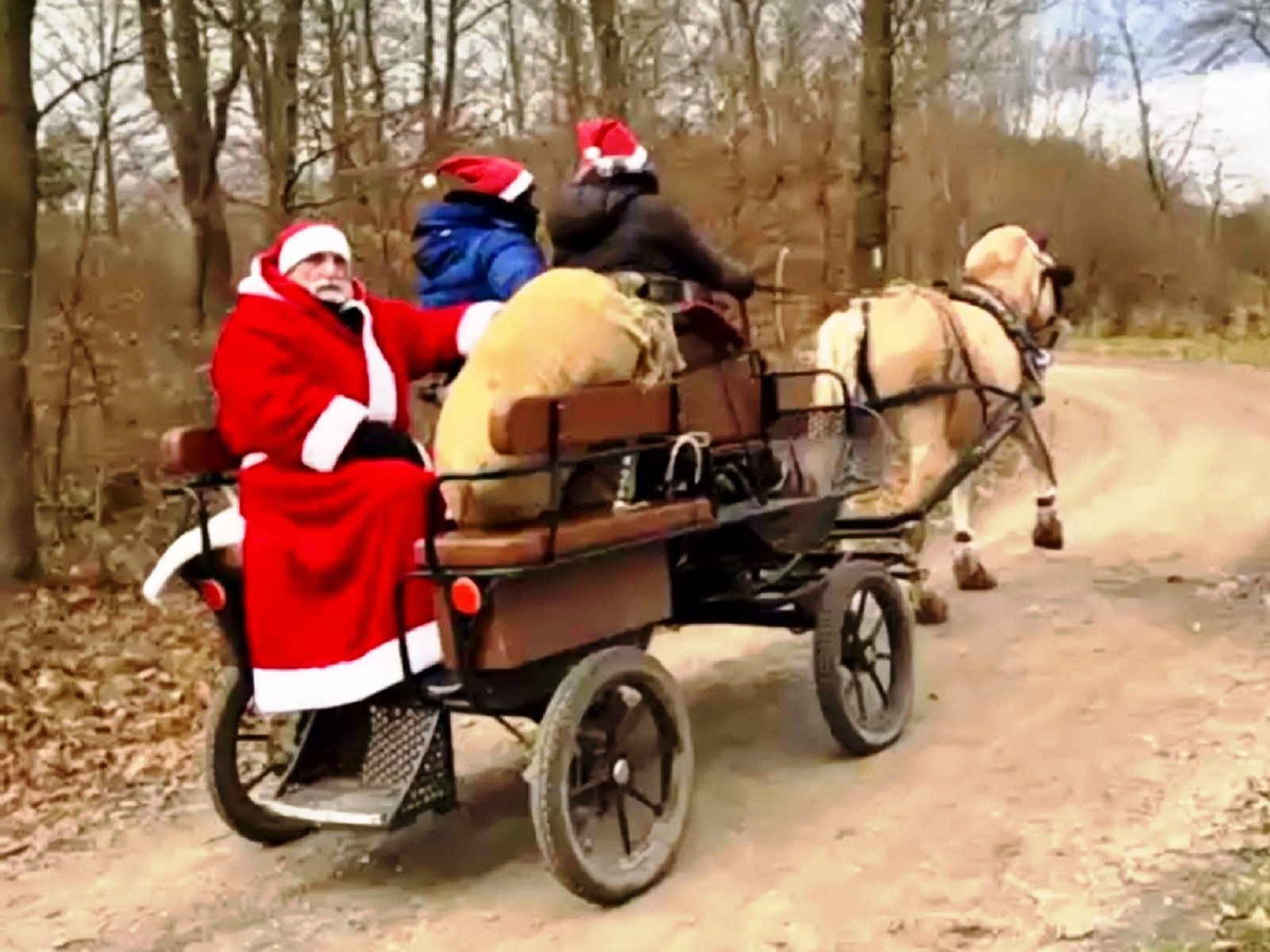 Unserem Redakteur blieb fast die Spucke weg, als er in der Katzbach stand und plötzlich ein leises Hufklappern hörte. Kein Glockenläuten, kein Rentiergeschnaufe – stattdessen kam der Weihnachtsmann höchstpersönlich auf einem Pferdegespann dahergerollt.