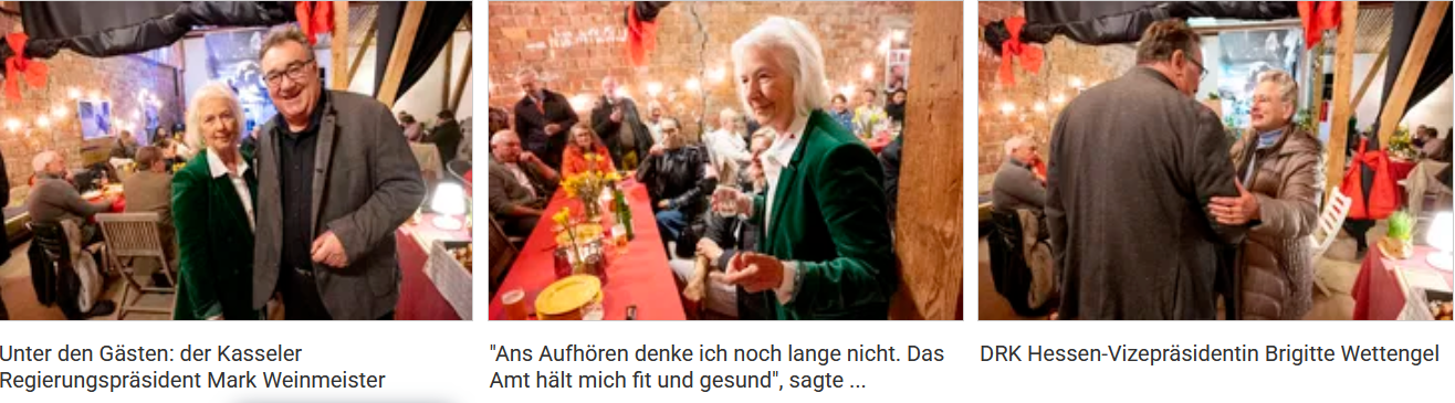 Ausdruck für ihr großes gesellschaftliches Engagement war nicht nur der vor Ort-Besuch vom Kasseler Regierungspräsident Mark Weinmeister (CDU), dem hiesigen Landrat Winfried Becker (SPD) und DRK Hessen-Vizepräsidentin Brigitte Wettengel zur rustikalen Geburtstagsparty in der Hofscheune, sondern auch ein persönliches Schreiben mit Porzellan-Präsent von Staatsminister Manfred Pentz (CDU), Hessischer Minister für Bundes- und Europaangelegenheiten sowie Entbürokratisierung und Bevollmächtigter des Landes Hessen beim Bund.