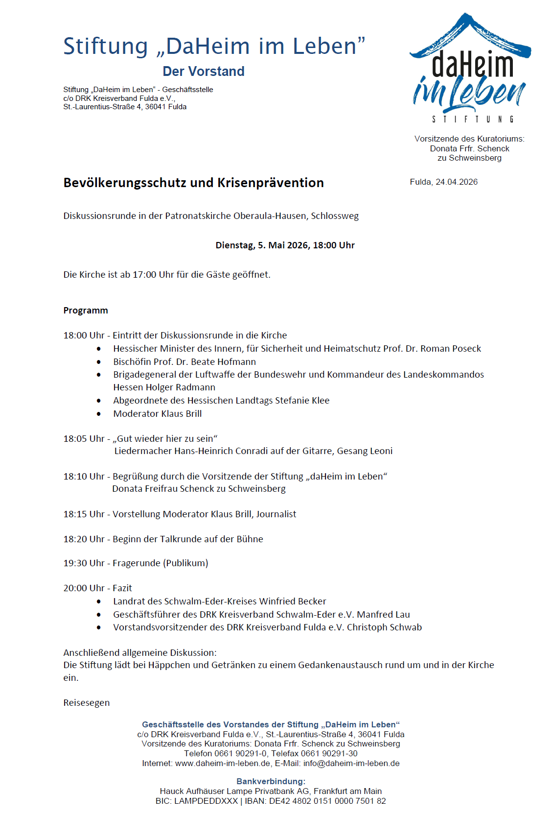 Disskussionsrunde Bevölkerungsschutz und Krisenprävention 28 April, 2026 by Karl-Heinz Klinger·Keine Kommentare